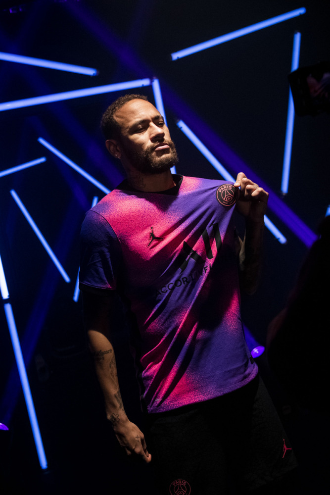 The two ranges, Performance and Lifestyle, are based on a spatial universe, with the Hyper Pink, Psychic Purple and Black colors bringing the theme to life. The jersey and shorts use a unique mesh that echoes the mythical Elephant Print created for the Air Jordan 3 in 1987. The Performance range is completed by a training kit featuring a new monogram “PARIS”, based on the NASA space shuttle typeface, as Paris Saint-Germain projects itself into the future while relying on the past.