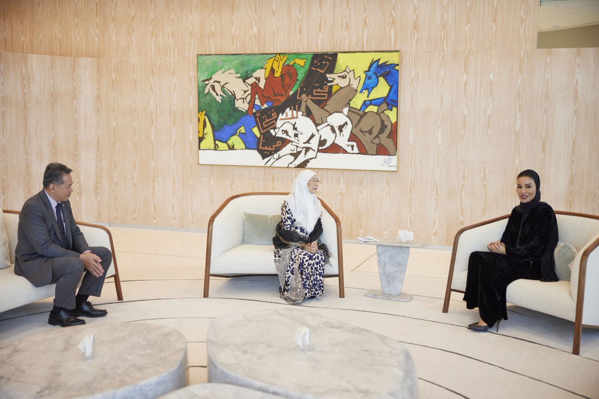 Doha, Qatar: Chairperson of Qatar Foundation and Education Above All HH Sheikha Moza bint Nasser met on Thursday with consort of Malaysia's Prime Minister HE Dr. Wan Azizah Wan Ismail, who is visiting Qatar to attend the inauguration of Al Mujadilah Centre and Mosque for Women.