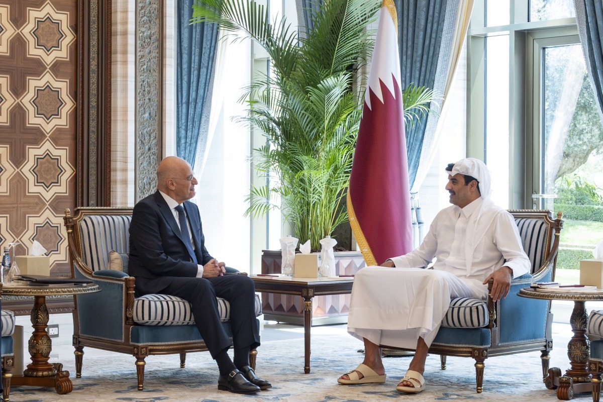 Doha, Qatar: The Amir His Highness Sheikh Tamim bin Hamad Al-Thani met in his office at Lusail Palace on Wednesday, April 1, 2026, with His Excellency Nikolaos Georgios Dendias, Minister of National Defence of the Hellenic Republic.