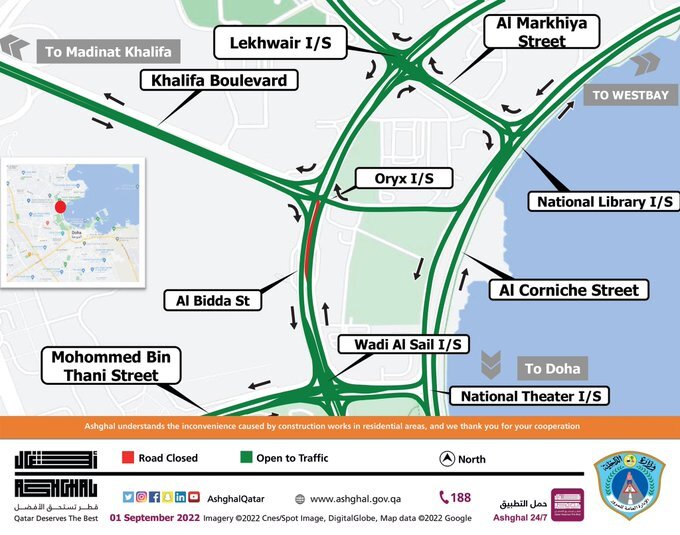Meanwhile, the left turn on Oryx Intersection towards Khalifa Boulevard will be closed for a day on Saturday, September 03, 2022. It advised road users heading to Khalifa Boulevard to use alternative roads to reach their destinations.