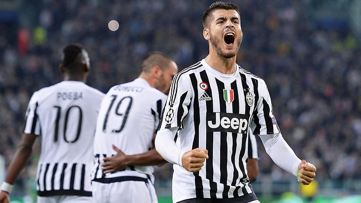 Turin: Alvaro Morata opened the scoring on the stroke of half-time and Simone Zaza hit his maiden Champions League goal at the death as Juventus dominated a listless Sevilla 2-0 to go top of group D on Wednesday.