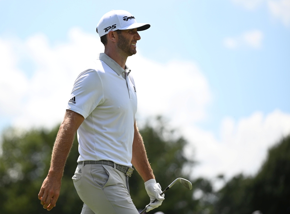 Aug 22, 2019; Atlanta, GA, USA; Dustin Johnson after putting on the 1st green during the first round of the Tour Championship golf tournament at East Lake Golf Club. Mandatory Credit: Adam Hagy-USA TODAY Sports