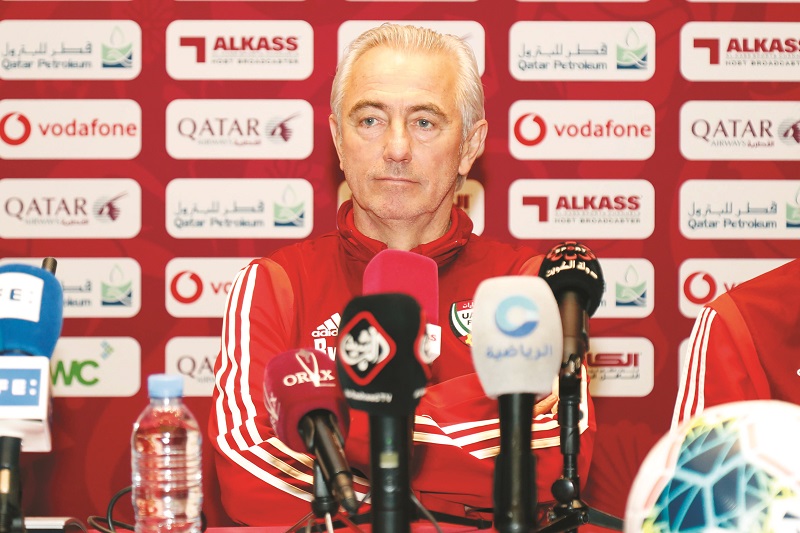 UAE coach Bert van Marwijk during a separate pre-match press conference.