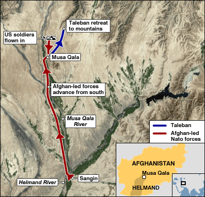 British and Afghan troops first wrenched Musa Qala, a town of about 20,000 people that straddles opium farms and smuggling routes, from the Taliban eight years ago before the Islamist militants won it back four days ago.