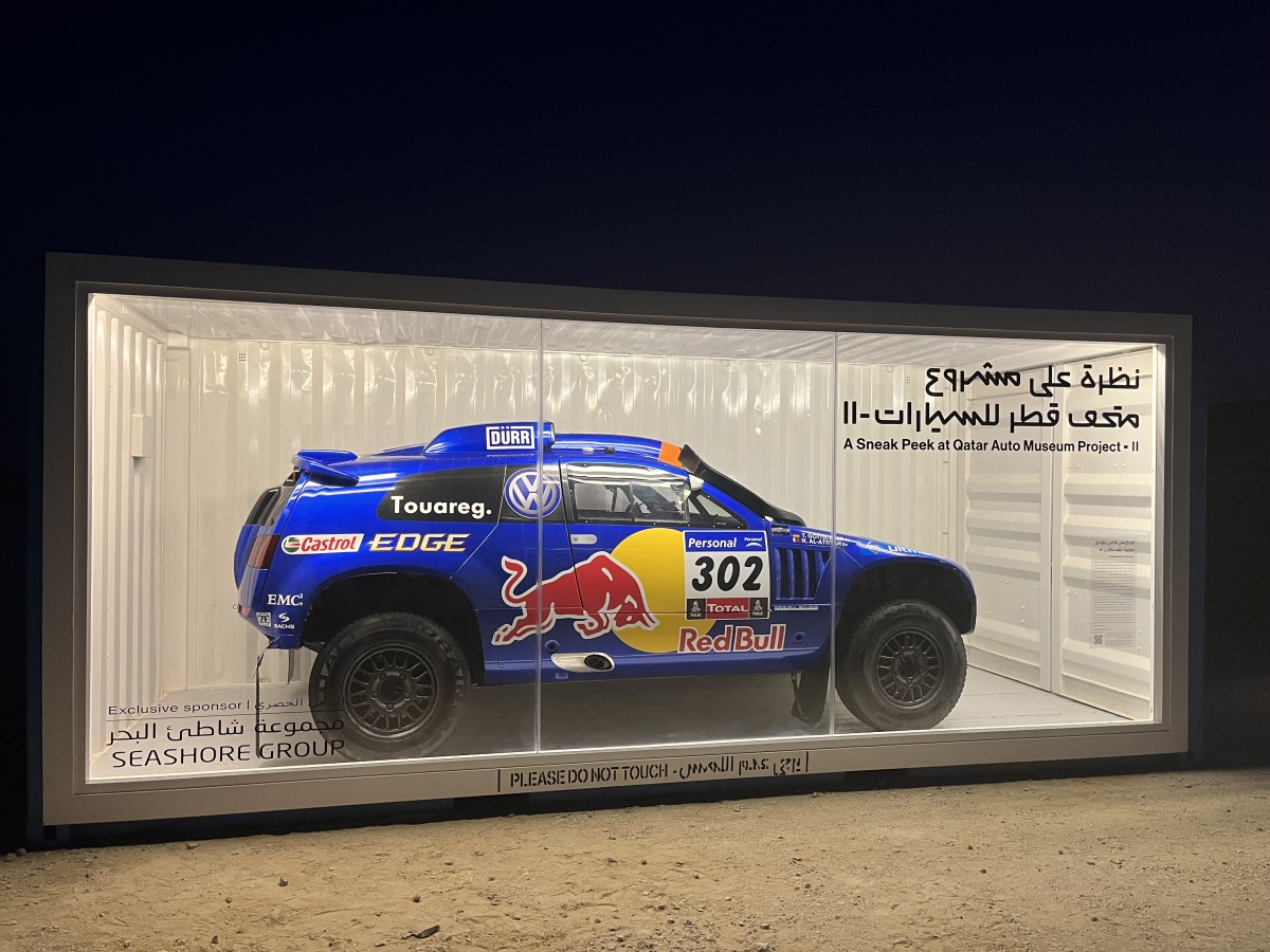The display at Al Zubarah Fort includes three unique cars: a Volkswagen Race Touareg 3, developed to participate in the 2011 Dakar Rally, which Qatari Rally driver Nasser bin Saleh Al Attiyah drove during the race when he was crowned Dakar Rally champion for the first time. The vehicle is presented with the support of the Volkswagen Group.