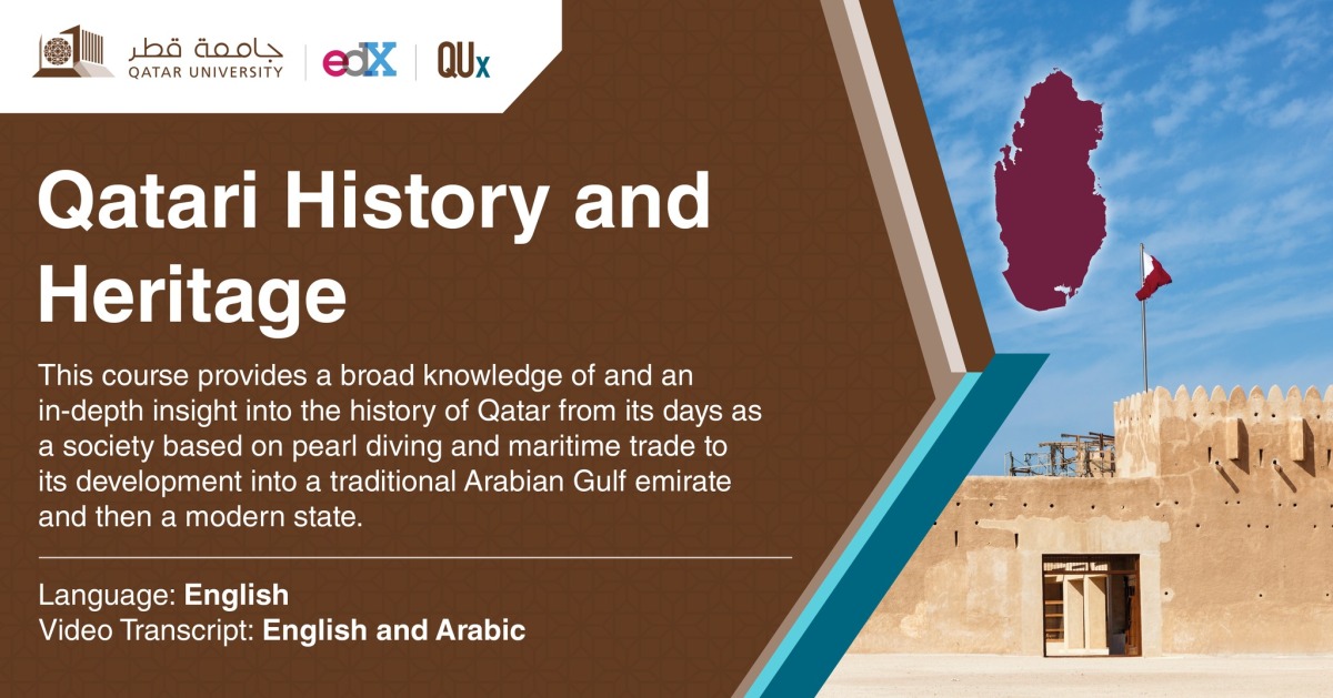 The Qatari History and Heritage MOOC provides a broad knowledge of and an in-depth insight into the history of Qatar from its days as a society based on pearl diving and maritime trade to its development into a traditional Arabian Gulf emirate and then a modern state.