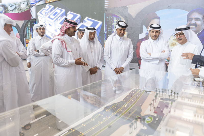 After displaying a short film about the development of sports and sports facilities in Qatar, the Prime Minister listened to a brief explanation on the connotations of the design of the building and its sections, as it is the first building in the world designed in the form of 2022.