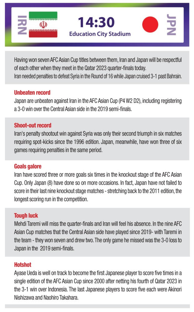 Standing in their way at Education City Stadium today are Iran, with the Samurai Blue holding an unbeaten record against their opponents at the AFC Asian Cup (W2 D2).