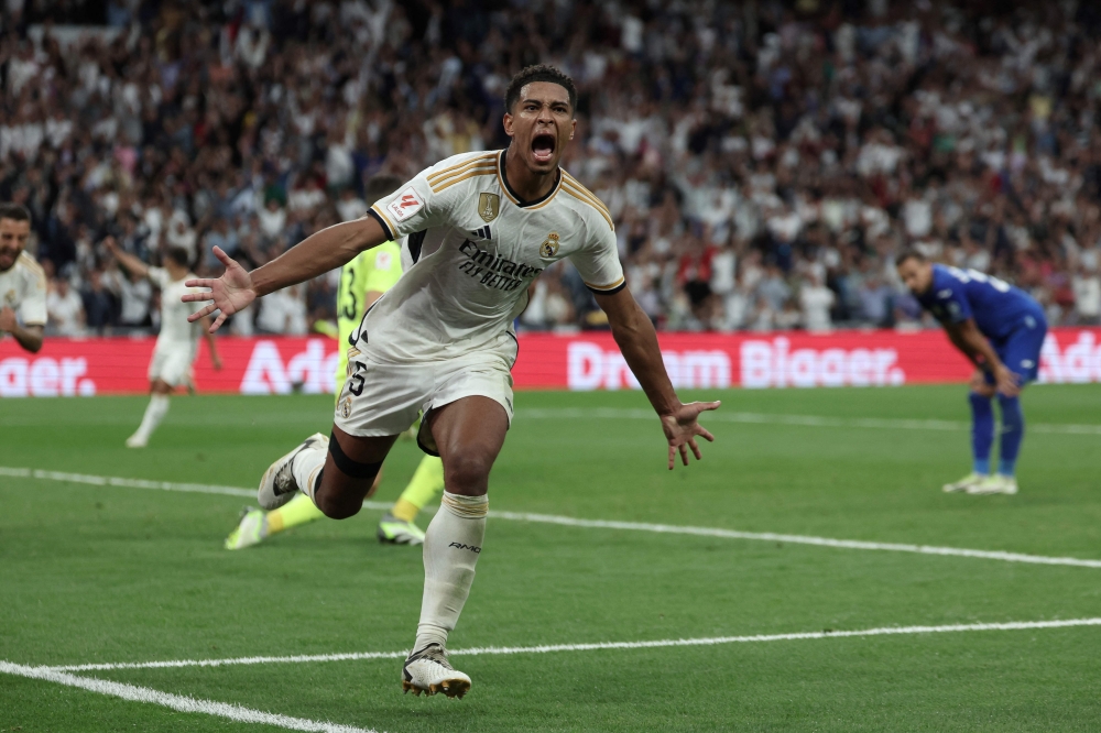 Barcelona: Jude Bellingham rescued Real Madrid with a 95th-minute strike to secure a 2-1 win over Getafe on Saturday and maintain Los Blancos' perfect start to La Liga, as they played with a closed roof at the Santiago Bernabeu for the first time.