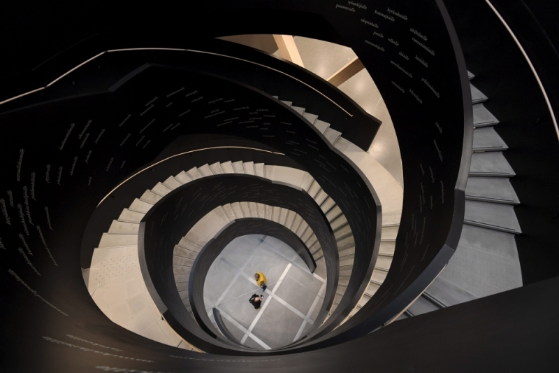 A staircase of Helsinki's new Central Library Oodi is seen during a preview on November 30, 2018 in Helsinki, Finland.