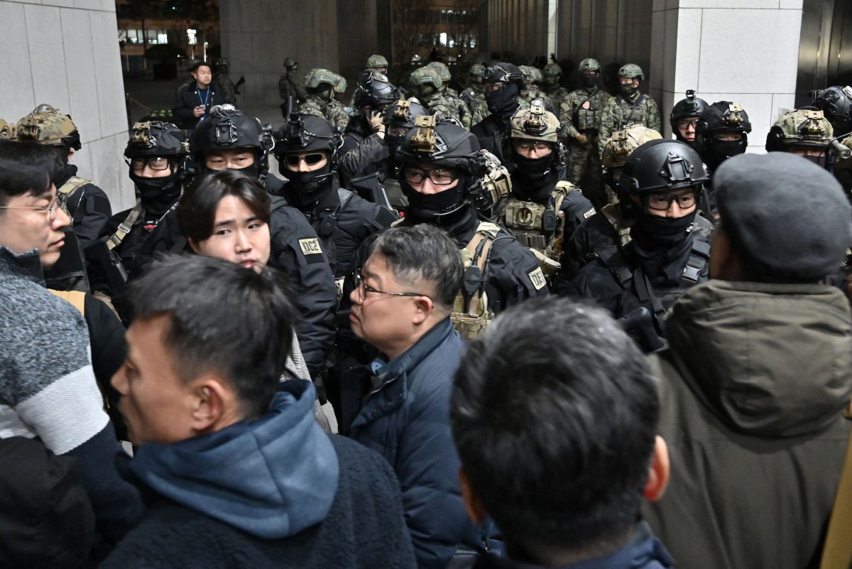 Soldiers try to enter the National Assembly building in Seoul on December 4 2024, after South Korea President Yoon Suk Yeol declared martial law. Photo by Jung Yeon-je / AFP