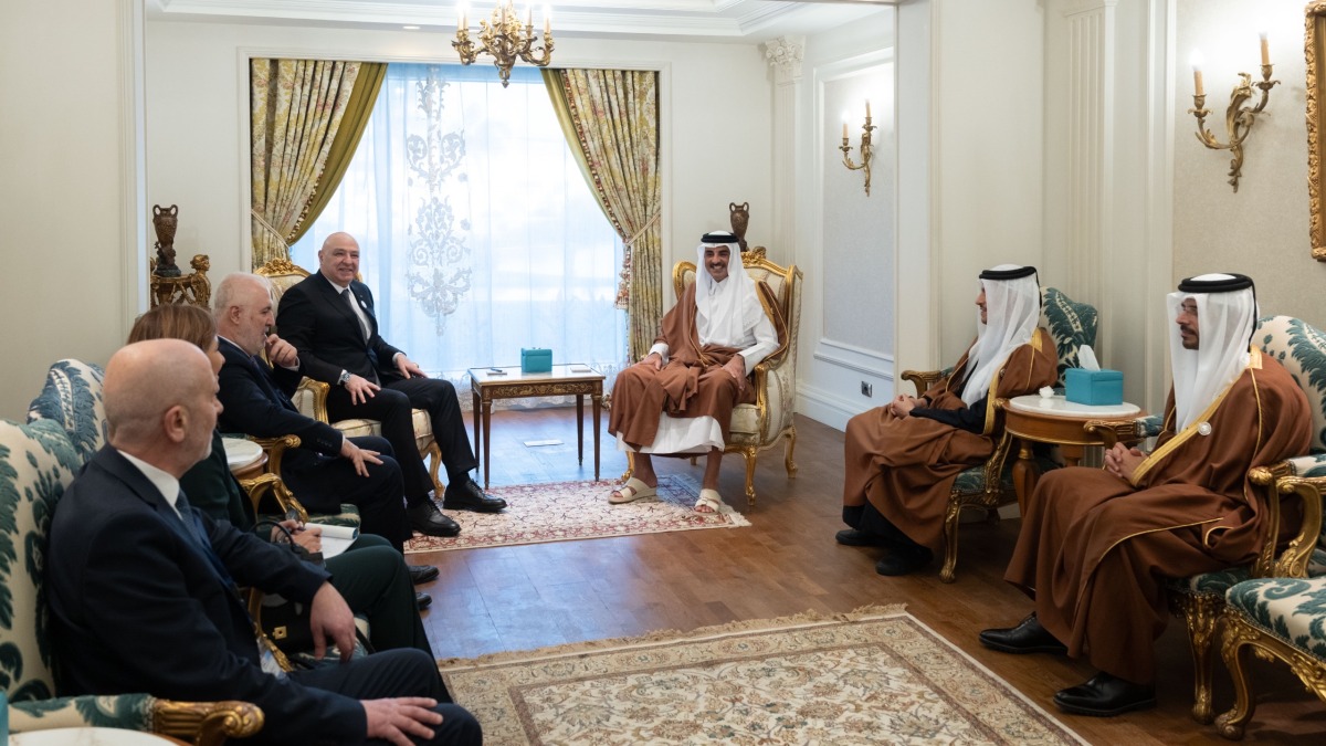 The meeting was attended by HE Sheikh Mohammed bin Abdulrahman bin Jassim Al Thani, Prime Minister and Minister of Foreign Affairs, HE Abdullah bin Mohammed bin Mubarak Al Khulaifi, Chief of the Amiri Diwan, and a number of Their Excellencies members of the official delegation.