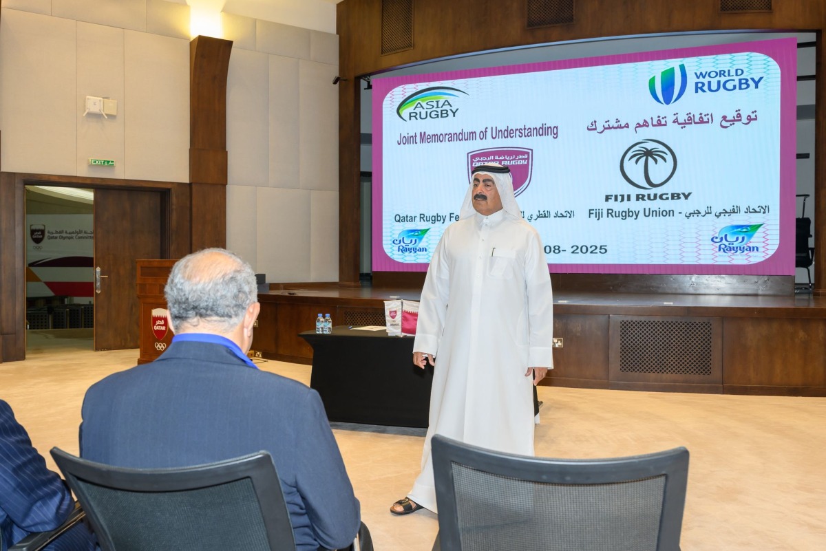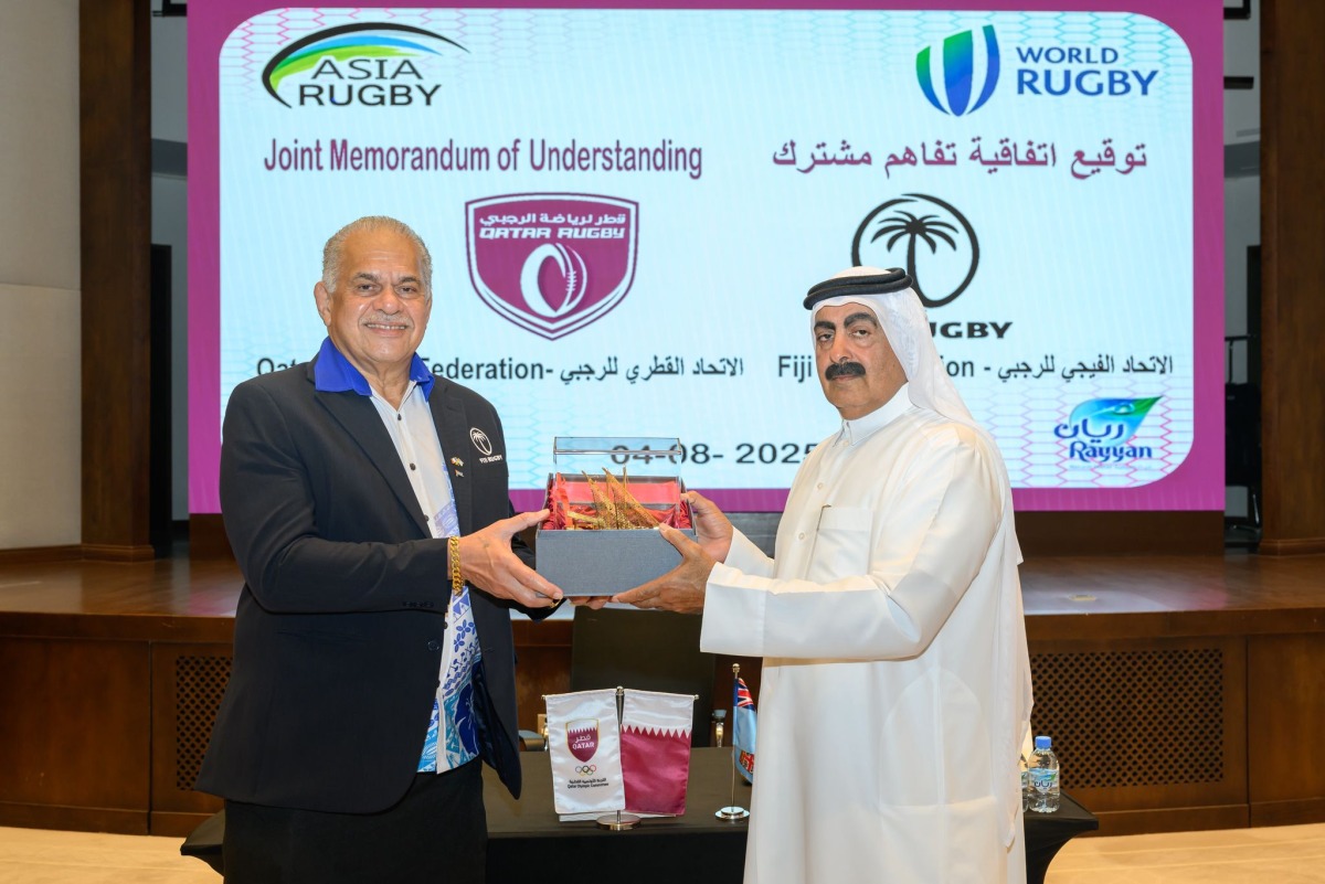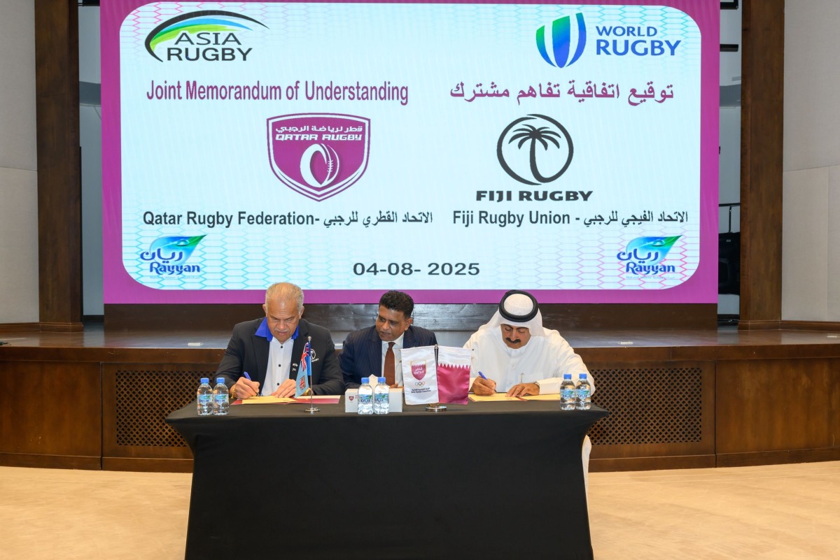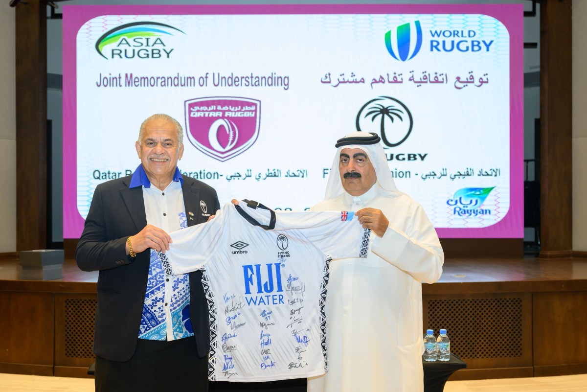 The agreement was signed by Yousef Jeham Al Kuwari, President of the Qatar Rugby and Hockey Committee, and John Ian, Chairman of the Fiji Rugby Union.