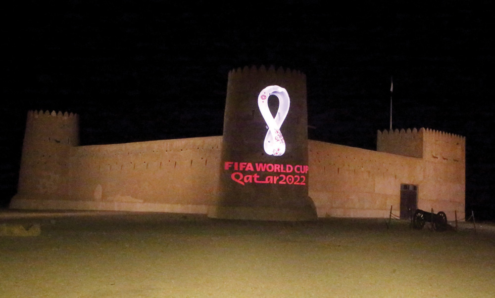 At 20:22 hours in Doha last night, screens installed at Katara amphitheater, Souq Waqif, Doha Tower, UNESCO World Heritage site Zubarah Fort and Ministry of Interior building revealed the emblem for the first time.