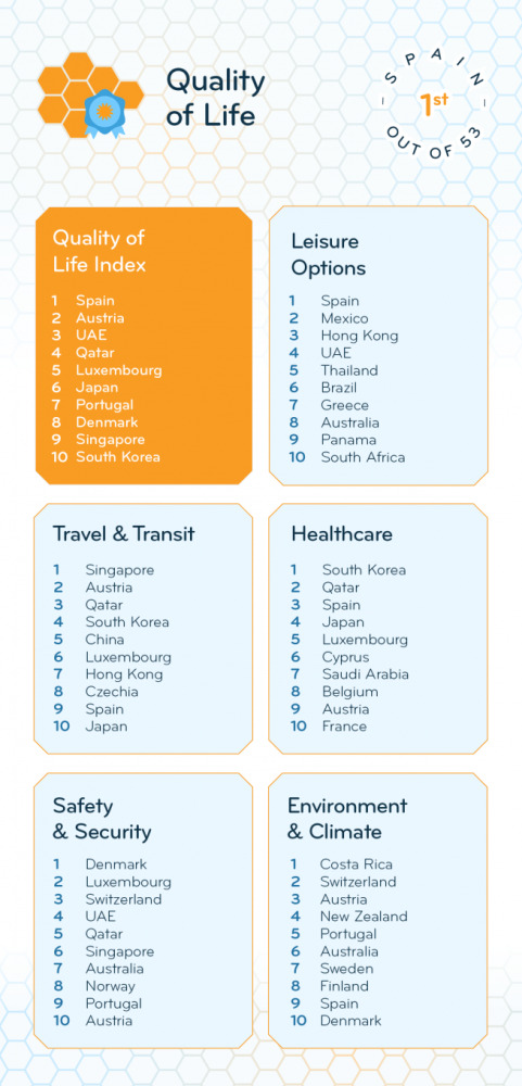 The ranking was based on five subcategories: Healthcare, Travel & Transit, Safety & Security, Environment & Climate, and Leisure Options.