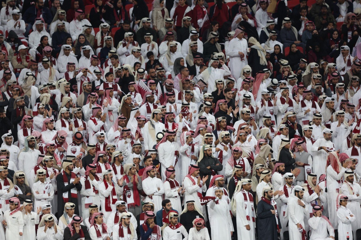 Qatar fans during the home team's quarter-final against Uzbekistan at Al Bayt Stadium on Saturday.