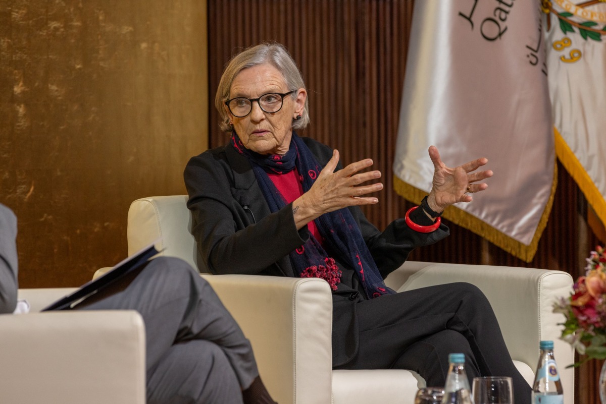 GU-Q Dean Safwan Masri (left) in conversation with Dr. Lisa Anderson, Dean Emerita at Columbia University’s School of International and Public Affairs.