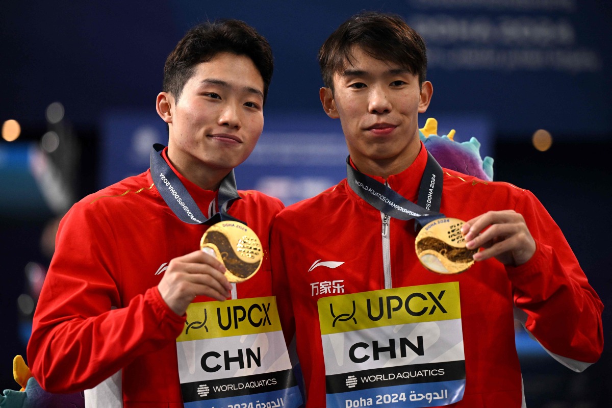 China's as Wang Zongyuan and Long Daoyi successfully defended their men's 3m synchro title in Doha, yesterday.