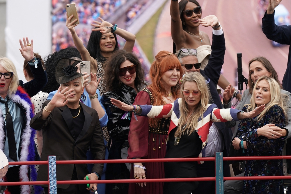 The pageant included more than 100 "national treasures" ranging from former soccer player Gary Lineker to model Kate Moss, runner Mo Farah and children's TV puppet Basil Brush.