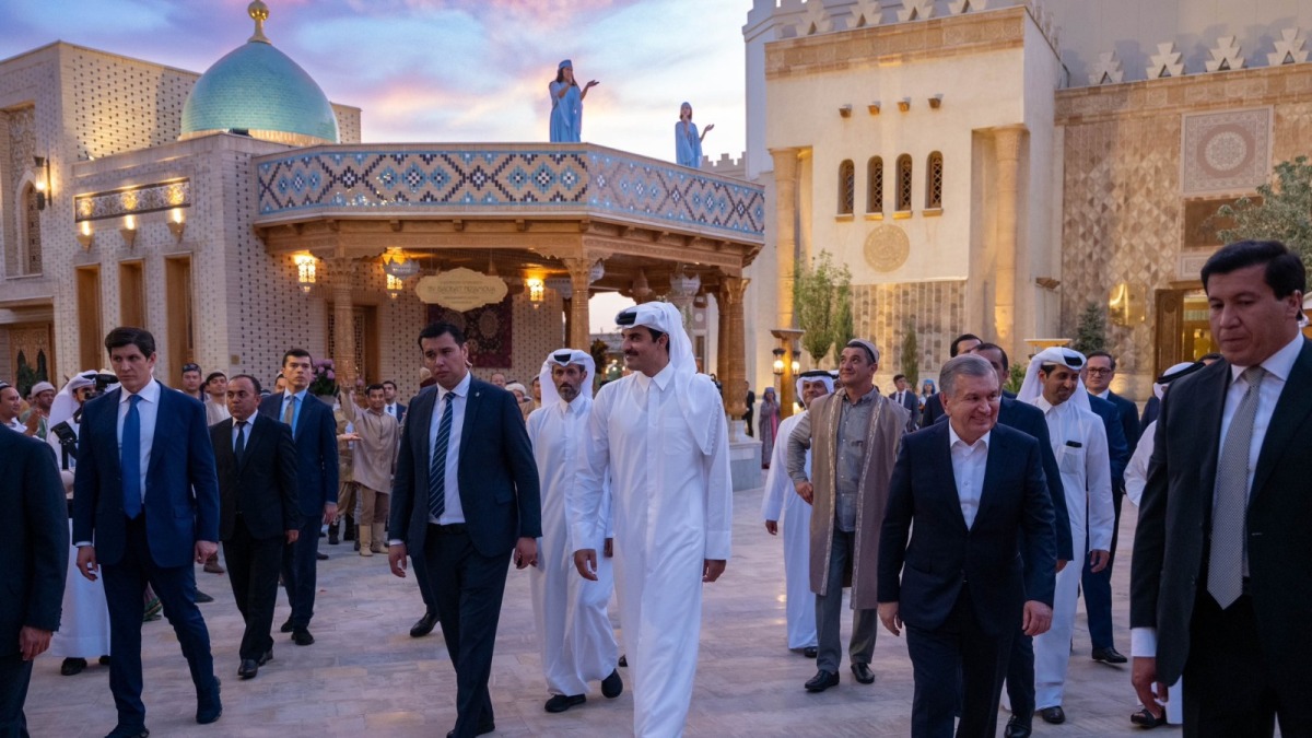 Also, HH the Amir and HE the Uzbek President visited Registan Square and listened to an explanation about the history of civilization and Islamic and experimental sciences in and around Samarkand, and concluded their tour with a visit to the Eternal City, where they were briefed on the most prominent customs and heritage traditions that the Uzbek people adhere to since ancient times.