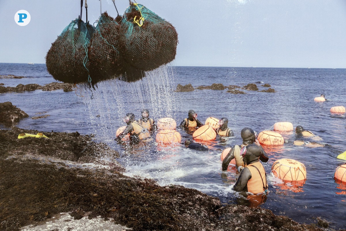 Haenyeo’s unique fishing techniques are what sets them apart from other diving cultures around the globe. Haenyeo is known for diving into the open sea, ranging from one to two minutes, without any breathing apparatus -- a sustainable choice by divers to preserve these natural resources and prevent them from being exhausted through mass harvesting. The divers then resurface with a fresh catch of seafood and make a distinctive whistling sound called “sumbisori” as they gasp for air.