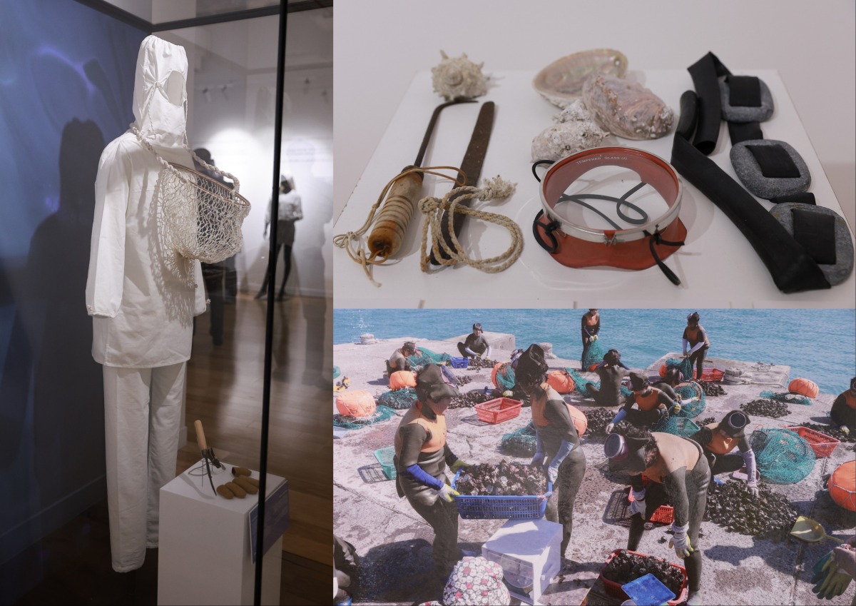 The heritage is intricately captured in the exhibition through a display of images, traditional diving outfits, and equipment such as swimming goggles, Tewak Mangsari (from “Tewak” a buoyant tool used by divers to navigate seafood harvesting locations, and “Mangsari” a fishnet attached to the Tewak to store the harvested seafood), Bitchang (a metal tool used to pick up abalones), and Kakuri (a tool that is used to pick up sea products between the cracks in the rocks).
