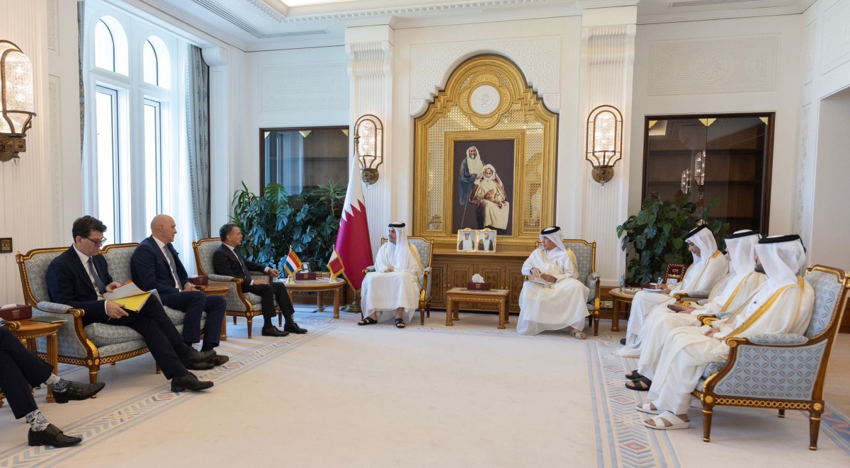 Doha, Qatar: Prime Minister and Minister of Foreign Affairs HE Sheikh Mohammed bin Abdulrahman bin Jassim Al Thani received today Minister of Foreign Affairs of the Kingdom of the Netherlands HE Caspar Veldkamp, ​​who is currently visiting the country.
