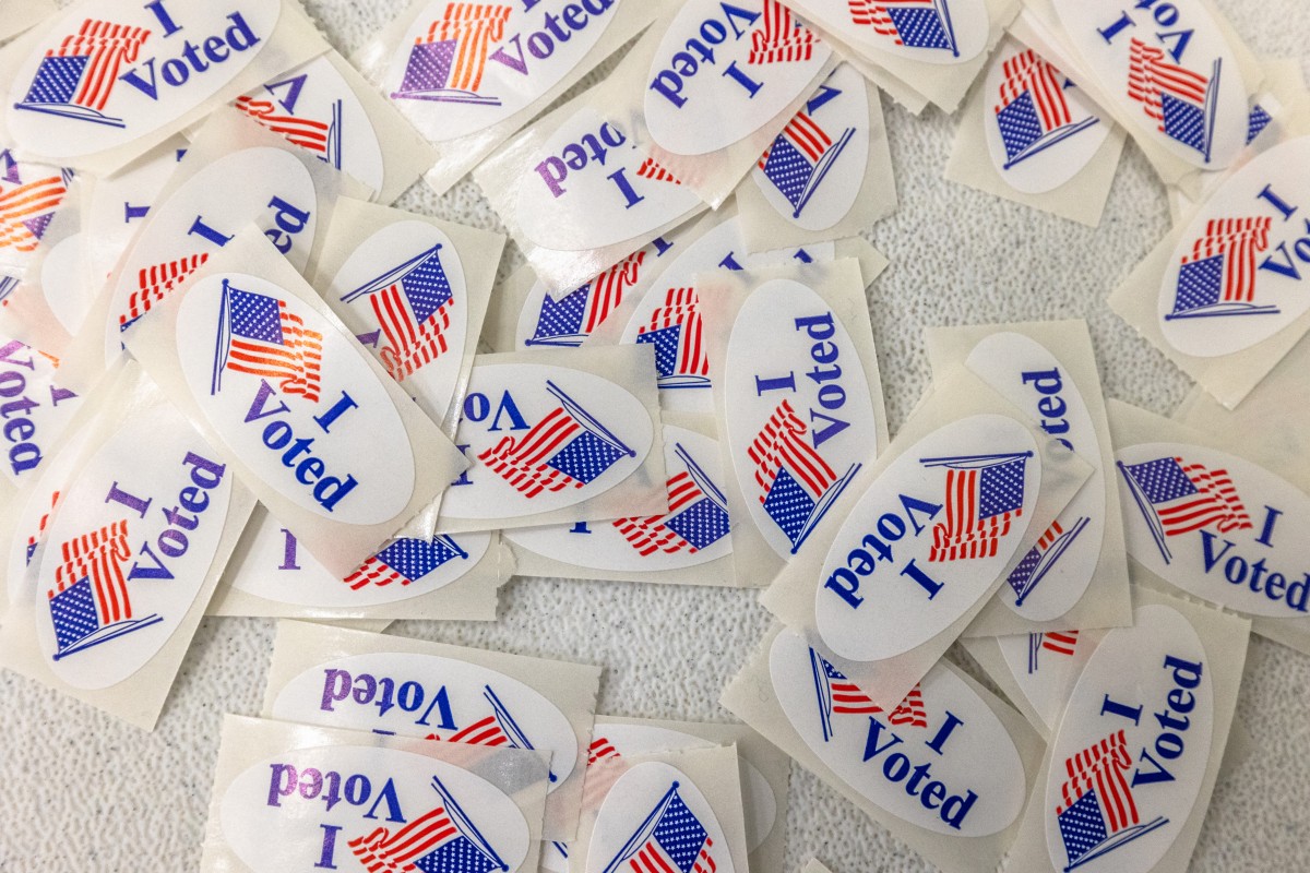 "I Voted" stickers are available to voters at a polling station at Greater Mount Moriah Baptist Church in Charlotte, North Carolina, located within Mecklenburg County, on November 5, 2024. Photo by Grant BALDWIN / AFP.