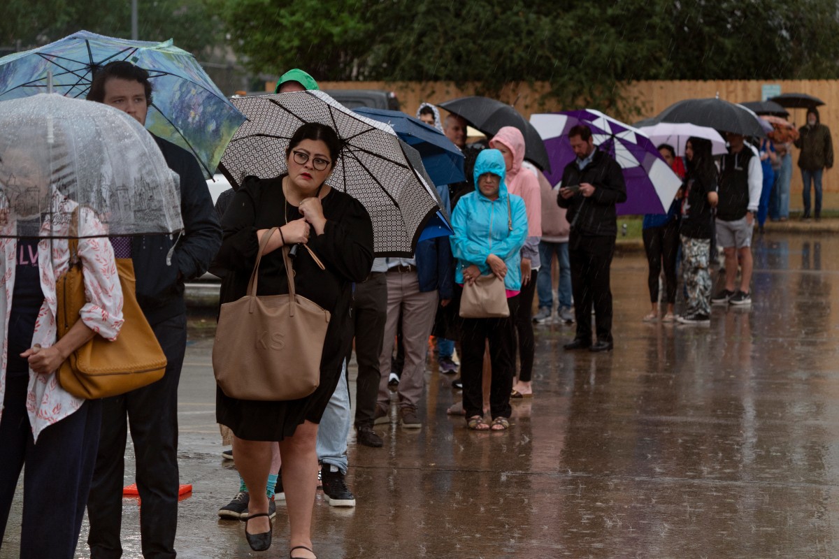 Voters on Tuesday morning were streaming enthusiastically to the polls, even huddling under umbrellas in pouring rain as they lined up to cast their ballots in Houston.