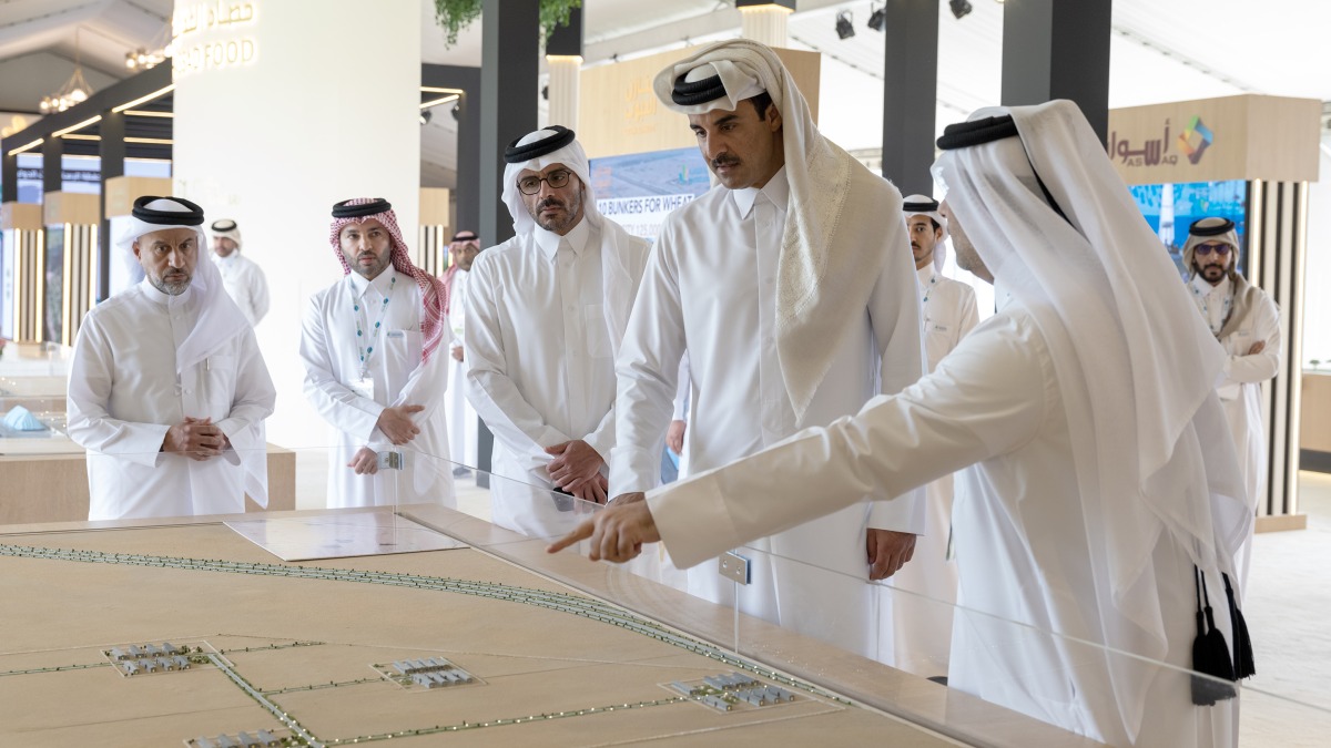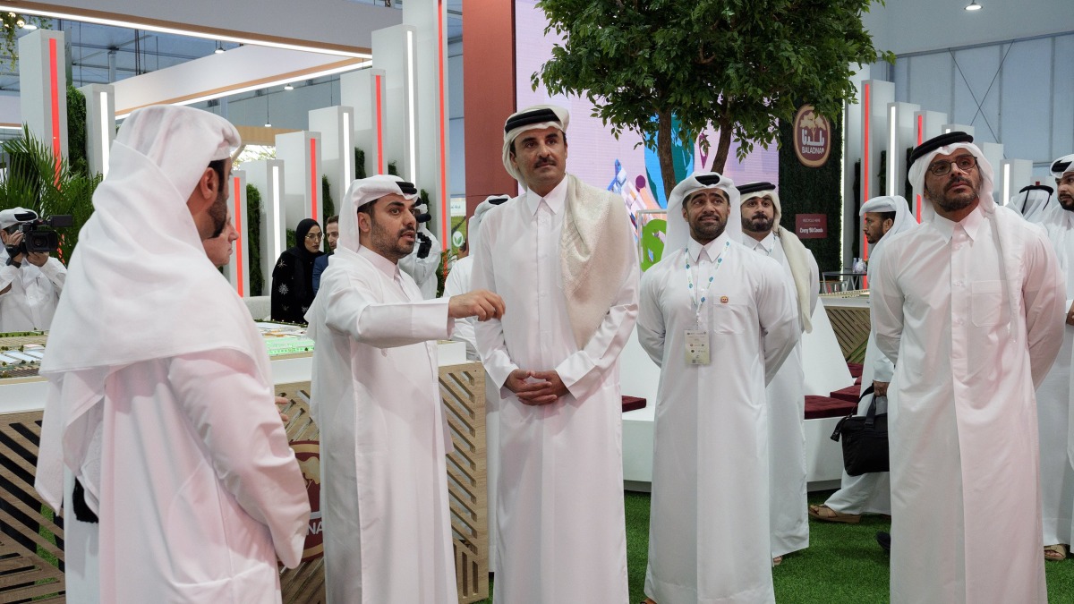During the visit, HH the Amir was briefed on the exhibition halls and pavilions of participating countries and entities on the latest agricultural systems and innovative solutions to improve productivity, reduce water waste, and enhance innovation and sustainable development in the agricultural sector, which is considered one of the main pillars of comprehensive development in the country within the framework of Qatar National Vision 2030.