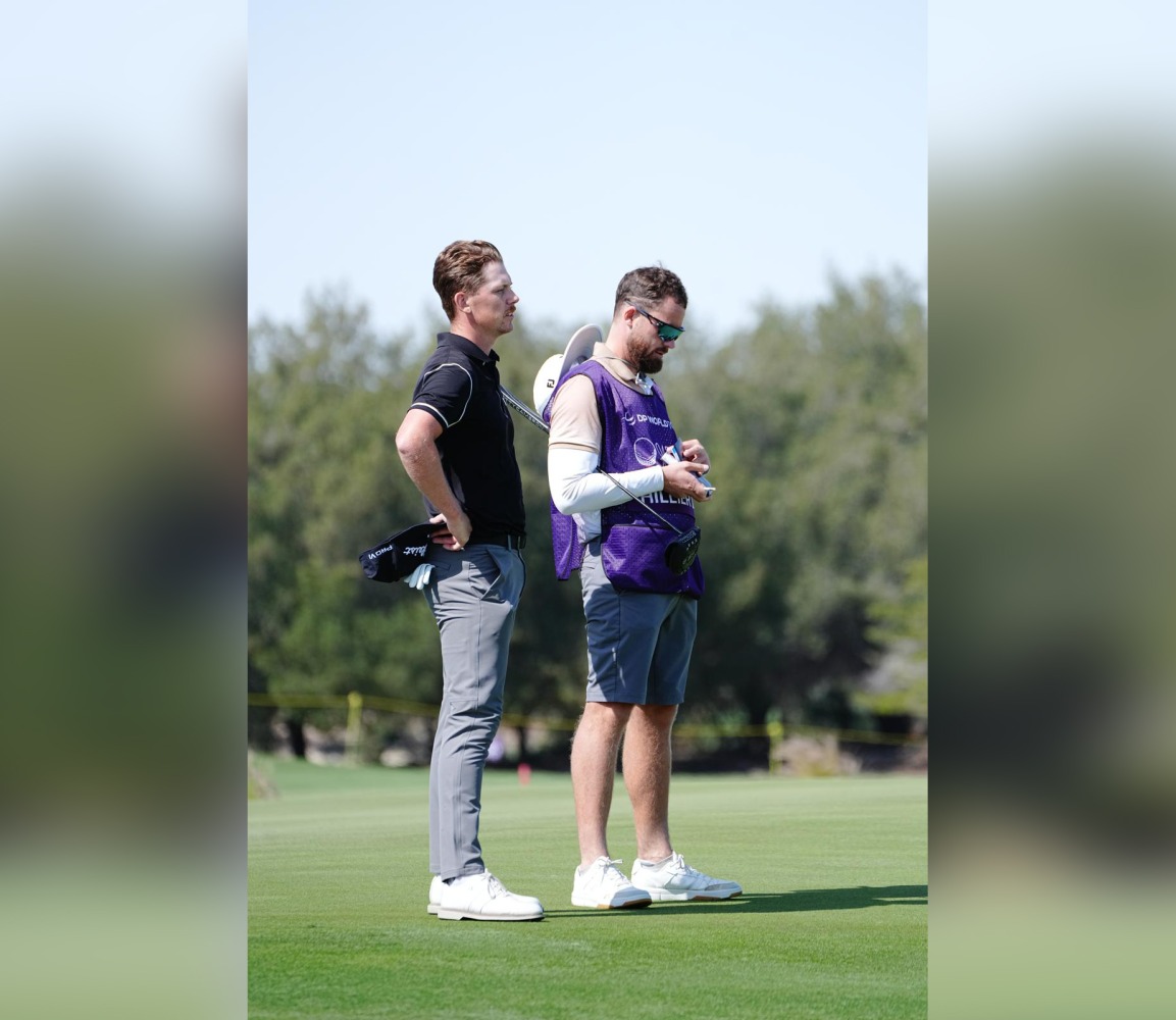 Daniel Hillier (left) of New Zealand with his caddy at Doha Golf Club.