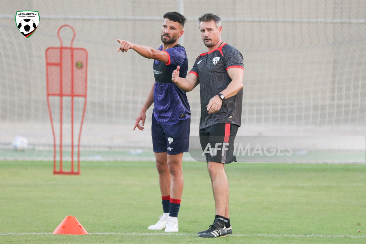 Afghanistan coach Ashley Westwood (right) during a training session in Al Ahsa, yesterday.