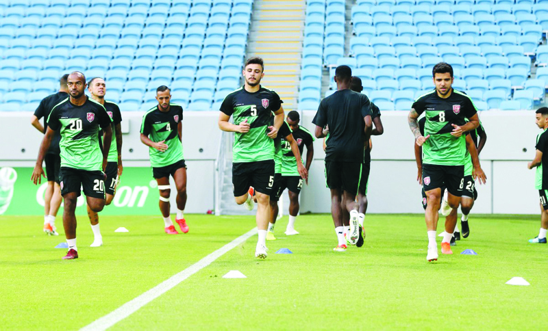 Al Sadd players take part in their final training session ahead of today’s Round of 16 clash against Al Duhail.