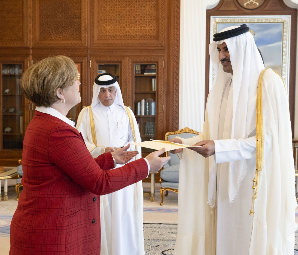 Doha: The Amir HH Sheikh Tamim bin Hamad Al-Thani received, in his office at the Amiri Diwan, this morning, the credentials of six new ambassadors to the country.