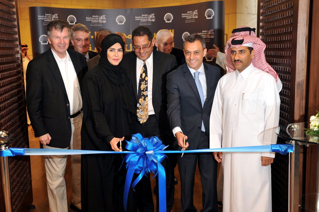 Maryam Hamad Al Mannai, Vice-President of Student Affairs at HBKU, and Paulo Macedo, GM, Corporate Affairs and Deputy Country Chairman of Qatar Shell, inaugurating the third Education City Career Fair in the presence of Dr Khaled B Letaief, Provost of HBK