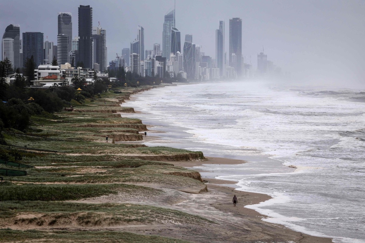 Residents walk along the damaged foreshore of Nobby Beach located on the southern end of the Gold Coast on March 7, 2025. Photo by DAVID GRAY / AFP
