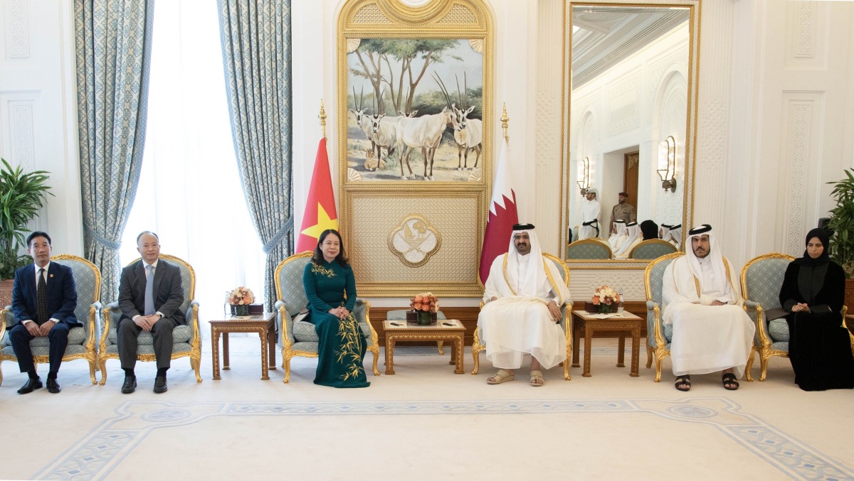 Doha: HH the Deputy Amir Sheikh Abdullah bin Hamad Al-Thani met at the Amiri Diwan on Sunday HE Vice-President of the Socialist Republic of Vietnam Vo Thi Anh Xuan and her accompanying delegation.