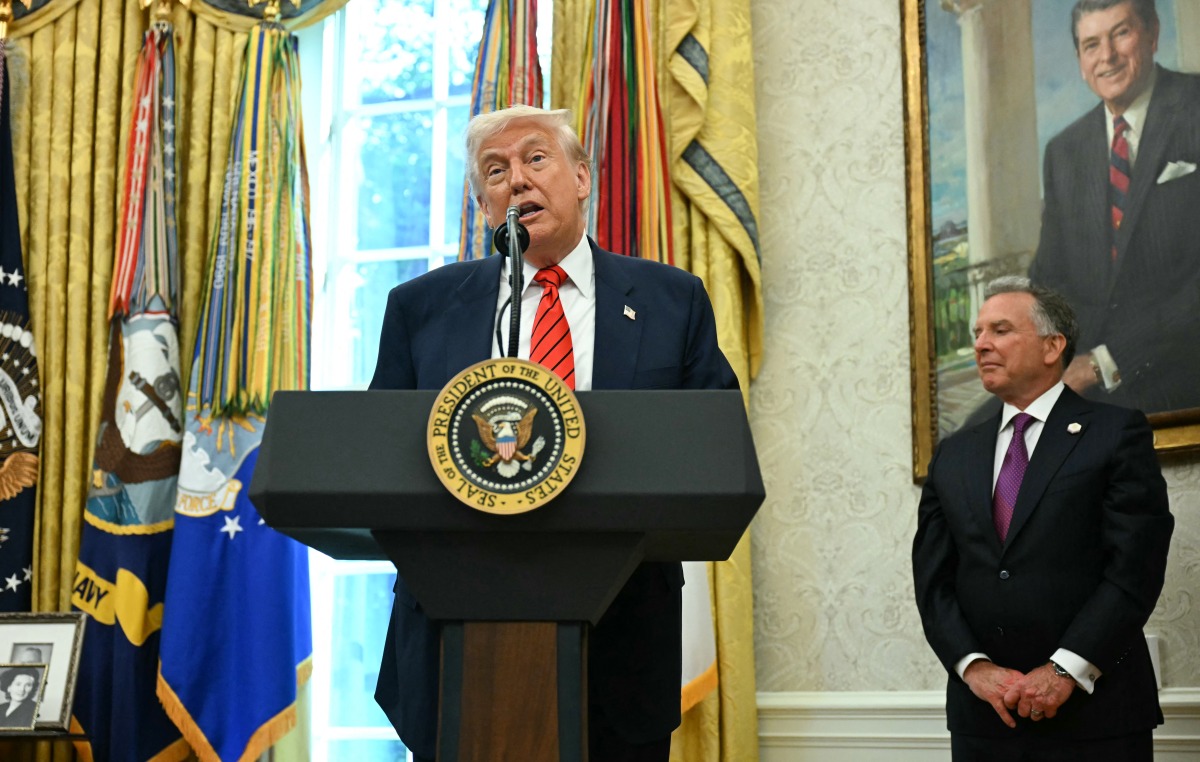 US President Donald Trump in the Oval Office of the White House in Washington, DC, on May 6, 2025. Photo by Jim WATSON / AFP.