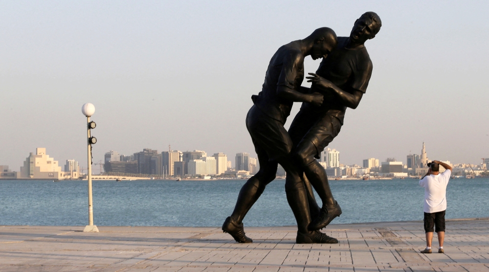 An October 2013 Reuters file photo of the bronze sculpture titled 'Coup de Tete' on the Corniche in Doha