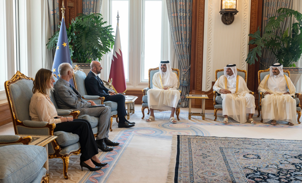Doha: The Amir HH Sheikh Tamim bin Hamad Al-Thani met at his Amiri Diwan office on Wednesday morning President of the European Council HE Charles Michel and his accompanying delegation on the occasion of their visit to the country.