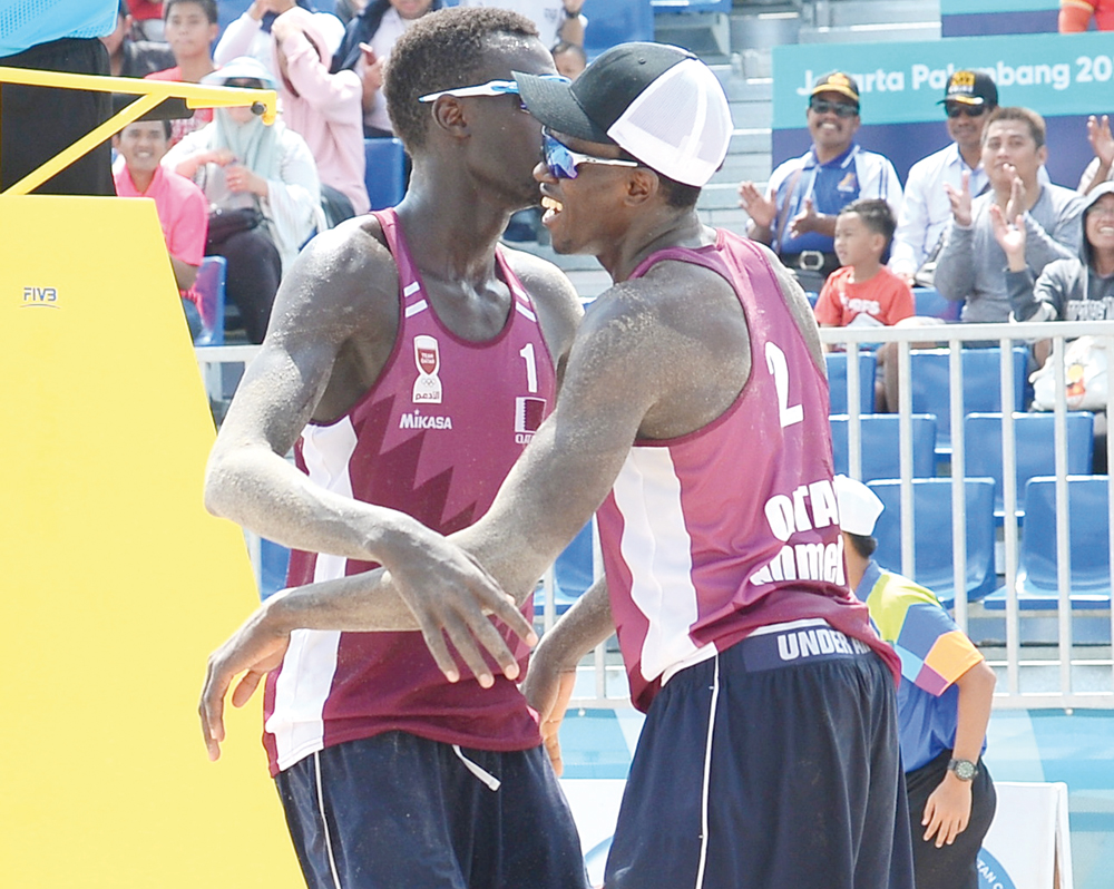 Cherif Younousse (left) and Ahmed Tijan clinched the gold medal in men's beach volleyball in Indonesia.