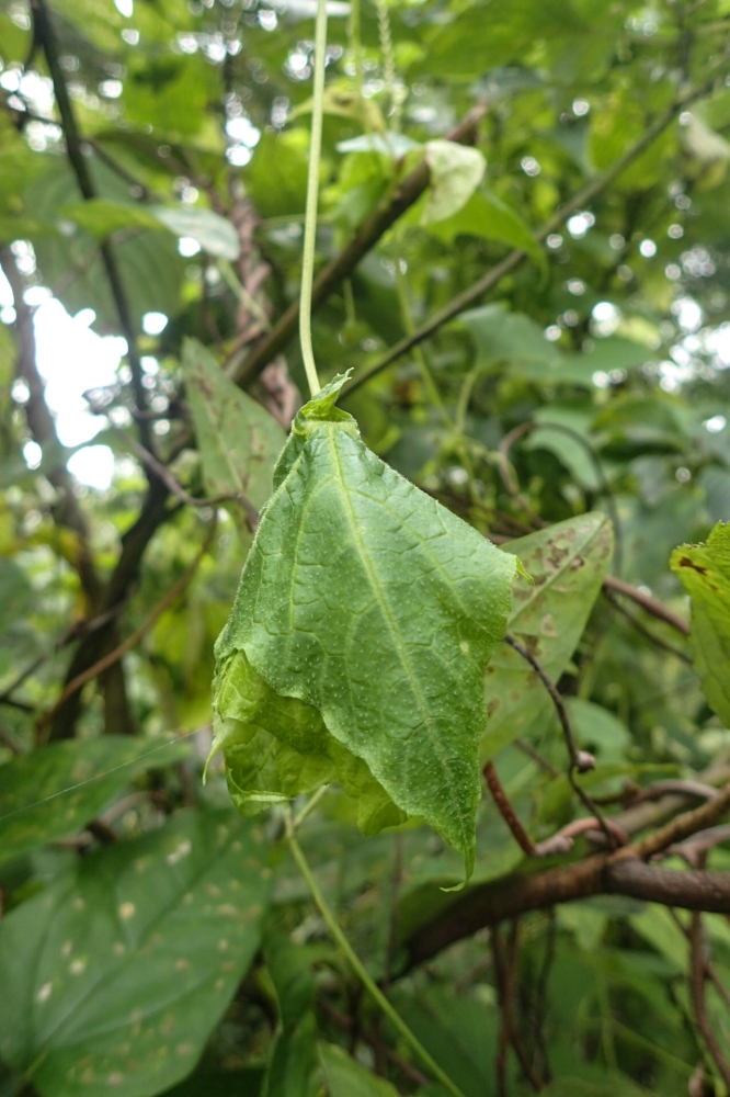 They describe the vine as a slender, annual plant that often inhabits the edges of deciduous forests with disturbances like roads, rivers or mountains.