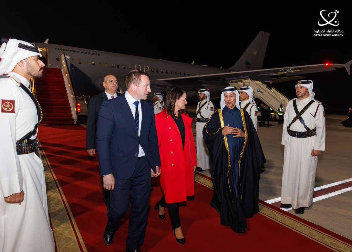 Her Excellency and the accompanying delegation were welcomed upon arrival at Hamad International Airport by the Minister of State Sheikh Fahd bin Faisal Al Thani, the Ambassador of the State of Qatar to the Republic of Hungary HE Abdullah bin Falah bin Abdullah Al Dosari and the Ambassador of the Republic of Hungary to Qatar HE Ferenc Korom.