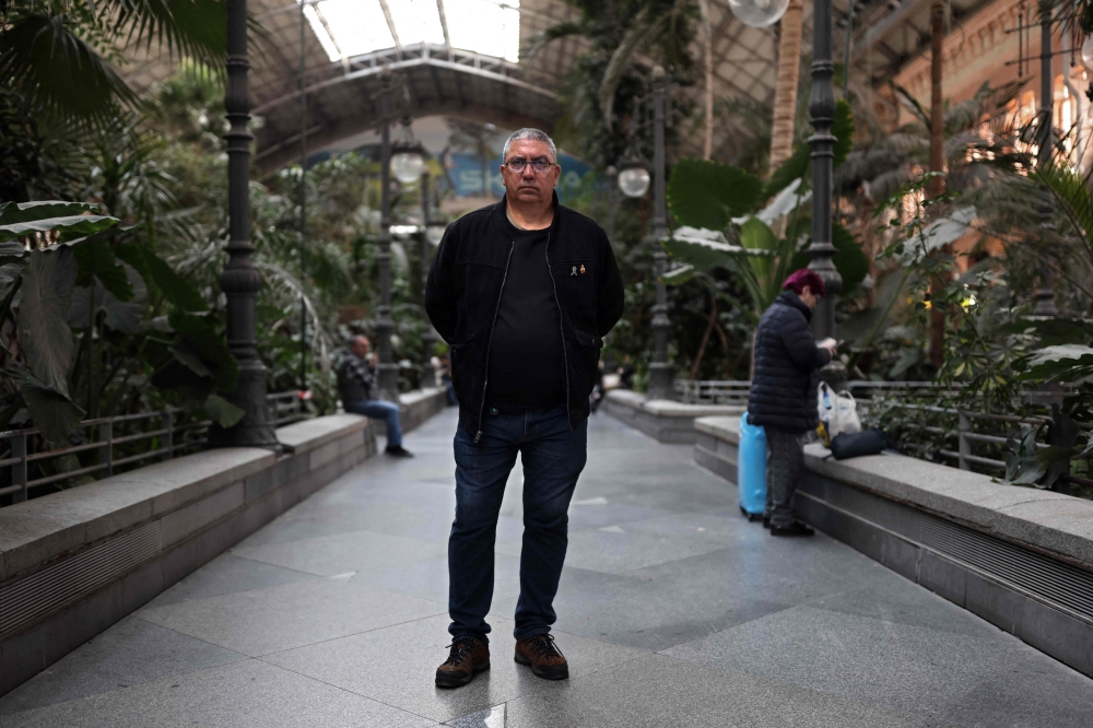 Francisco Alameda Sanchez, 60, a survivor of the 11-M deadly attacks perpetrated on March 11, 2004 in Madrid, poses on March 6, 2024 at Atocha train station, where he resulted injured twenty years ago by the bombing. Photo by Thomas COEX / AFP