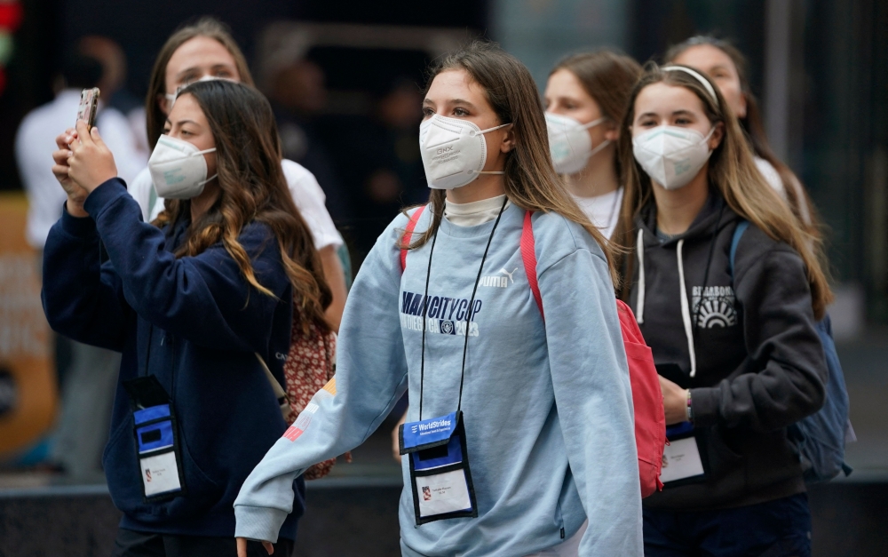 Officials handed out face coverings at train stations, bus depots and parks, and declared public schools would switch to remote-learning on Friday.