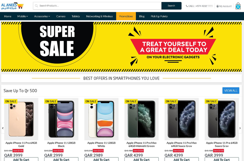 The online platform www.alaneesqatar.qa is part of Al Anees Electronics, a local born brand and one of the leading re-sellers of smartphones and accessories in the country since 1992.