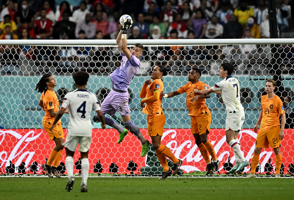 Netherlands’ Andries Noppert grabs the ball during the Round of 16 match against United States. REUTERS
