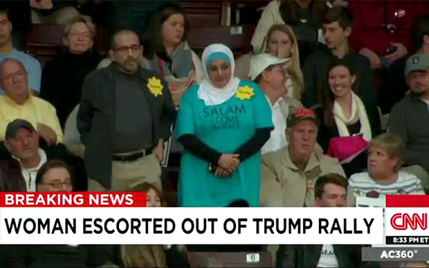 "The image of a Muslim woman being abused and ejected from a political rally sends a chilling message to American Muslims," CAIR executive director Nihad Awad said in a statement carried by US media.