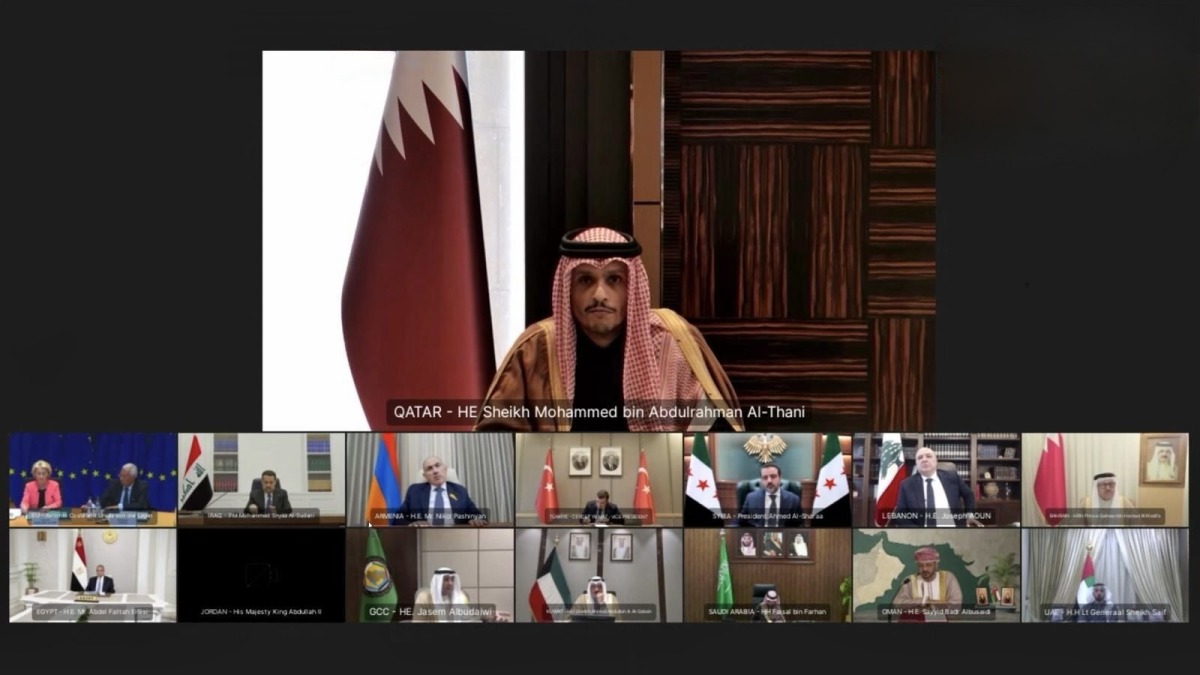 Doha: The State of Qatar participated today in a joint summit of leaders from the Gulf Cooperation Council (GCC) states, the Arab Republic of Egypt, the Hashemite Kingdom of Jordan, the Syrian Arab Republic, the Republic of Iraq, the Lebanese Republic, the Republic of Turkiye, the Republic of Armenia, and the European Union, held virtually.
