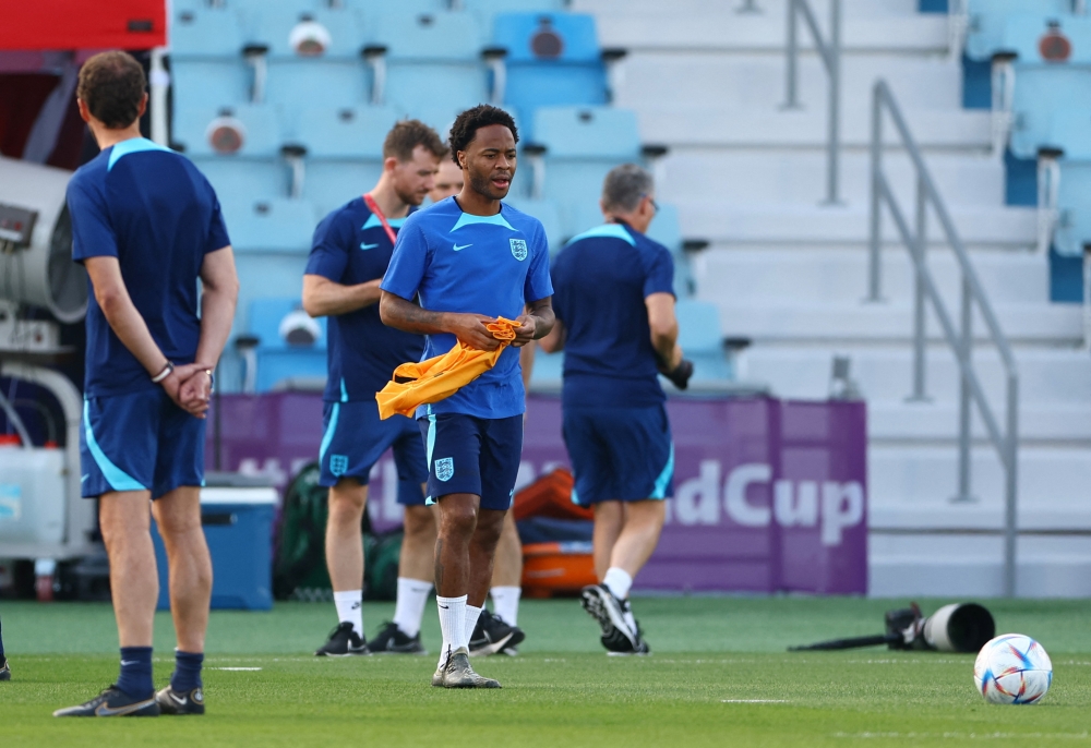 December 9, 2022 England's Raheem Sterling during training REUTERS/Molly Darlington